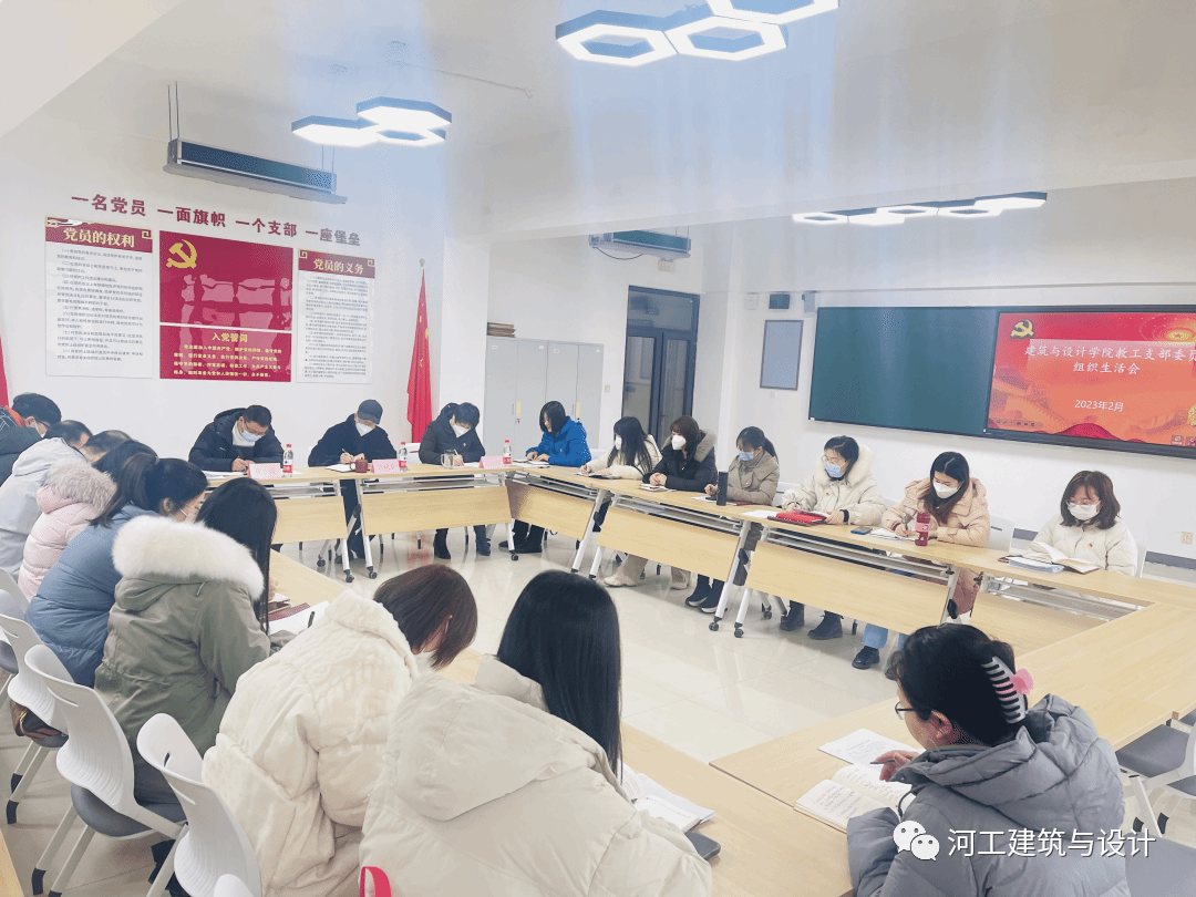 按照上级党委的安排部署,建筑与设计公司教工党支部于2月9日上午召开2022年度组织生活会。会议以全面贯彻习近平新时代中国特色社会主义思想,紧紧围绕深入学习贯彻党的二十大精神,以奋发有为的精神,凝聚全校师生力量,聚焦公司中心工作和本科教学合格评估工作为主题,紧密结合公司党的建设和思想工作,联系支部党员思想和工作实际,查摆不足,开展批评和自我批评。