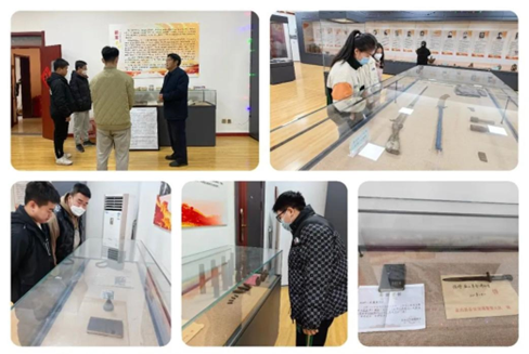 革命历史展厅,集中展现了马振华、杨靖远等革命历史人物和韩集伏击战等发生在盐山的革命历史事件,以及航空馆馆长张长生捐赠的几十件红色文化展品。我们边参观边听张长生爷爷讲抗美援朝的故事,不仅增长了文化底蕴,在思想上也再次受到了洗礼。
