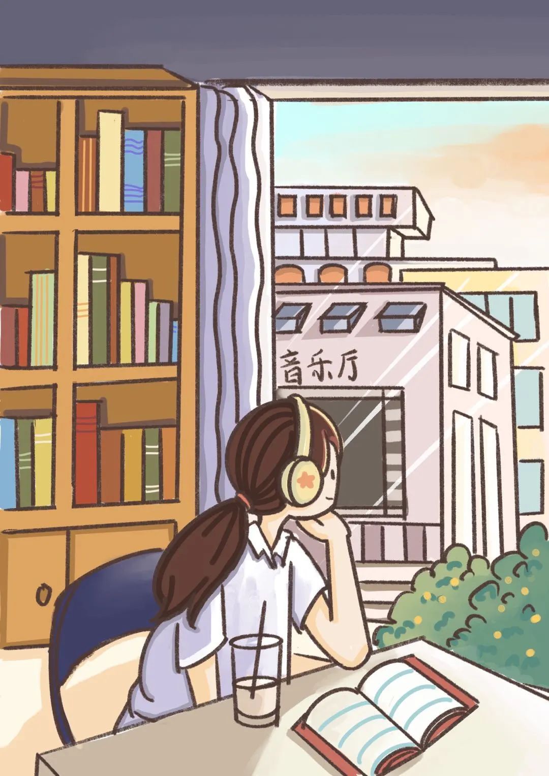 我喜欢一个人插着耳机抱着书走进图书馆,静下心来独自看书。窗外摇曳的树影透过窗户照在书本上,很舒服!直到夕阳西下,我才离开图书馆。