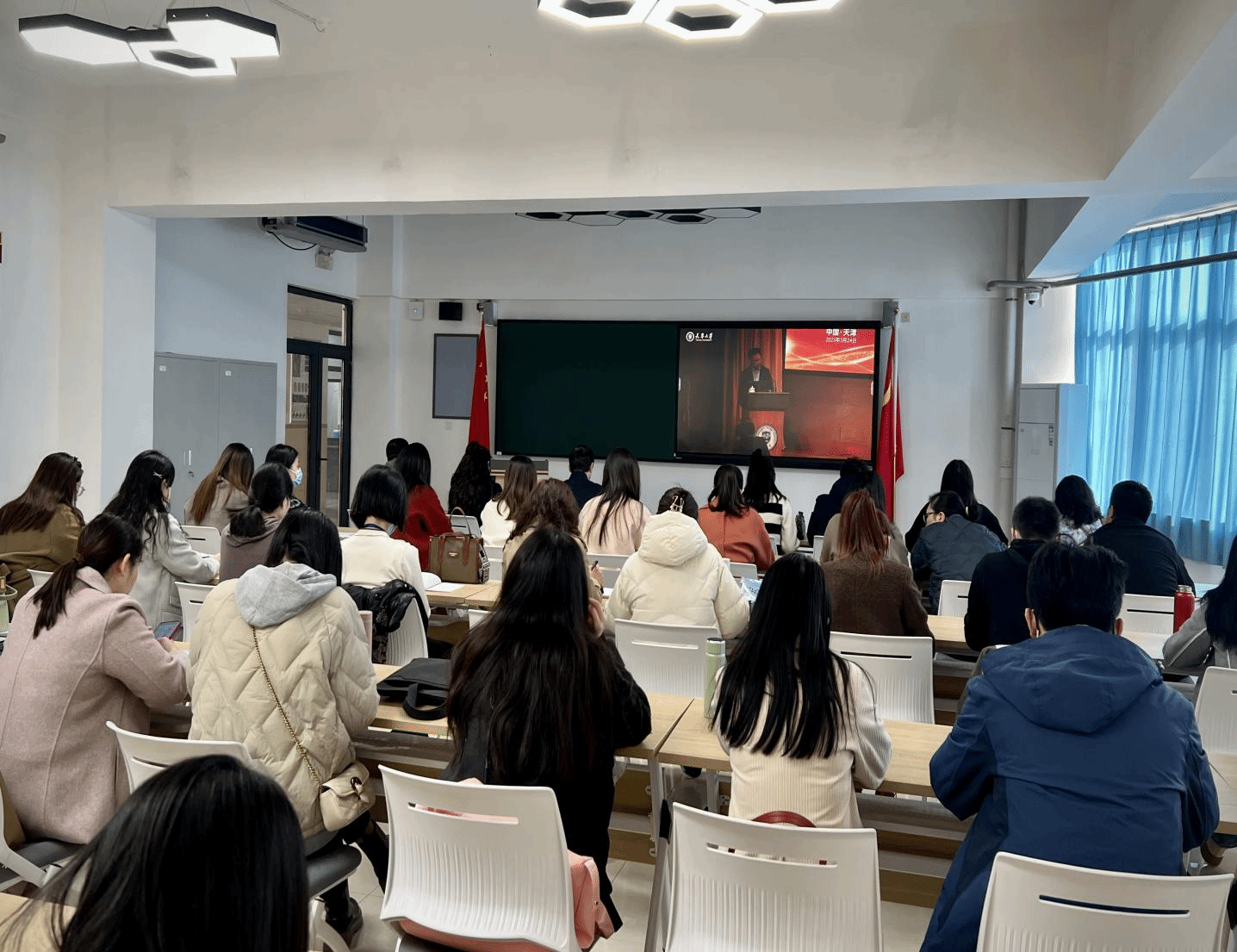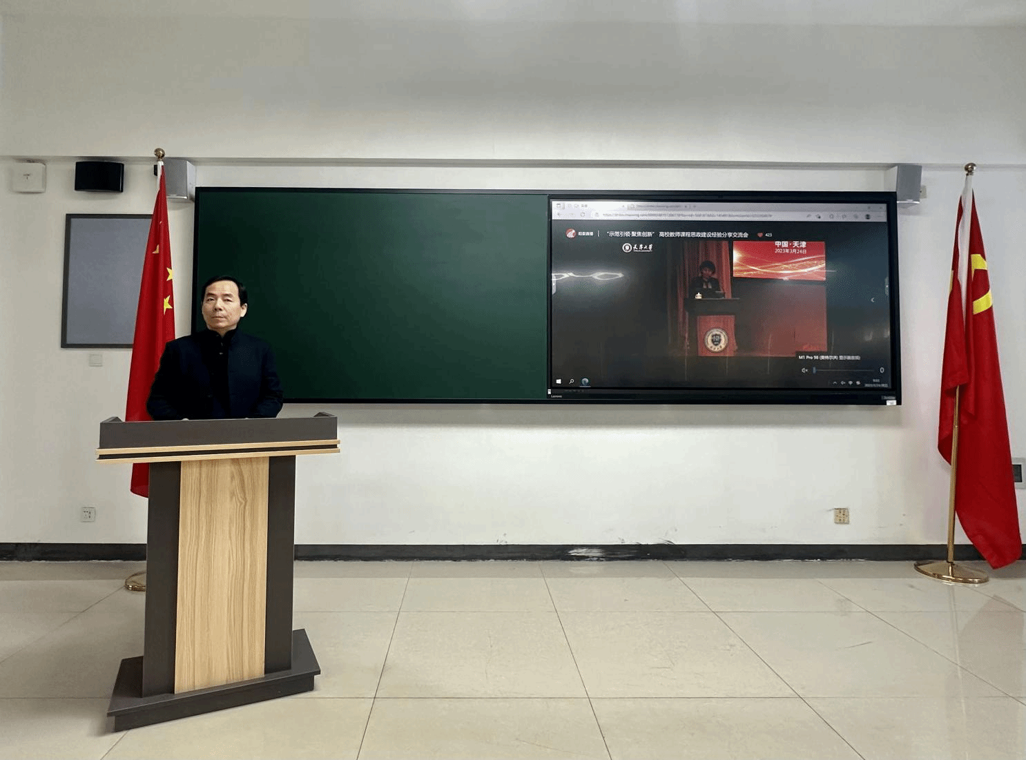 全体教师先后学习了天津大学在课程思政理念学习贯彻、人才培养体系、专业建设、课程建设等方面系统的经验和做法。天津大学从课程思政自然而然和润物无声的基本特征落脚,以习近平新时代中国特色社会主义思想、习近平关于教育的重要论述、习近平关于立德树人的重要论述为根本遵循,用好课堂教学这个主渠道,探索课程思政、专业思政、学科思政的体系建设,初步形成了一条切实有效的实践路径。在实践中,其以挖掘课程思政元素、有机融入课堂教学、育人者先受教育为基本功,把着眼点和着力点放在回归课程思政的本意,从课程、专业、到整个育人体系,再从教师、系、公司、到公司,打造系统的课程思政!严谨的思维,求实的作风,丰富的内容,深深的吸引了在场的每一位老师。