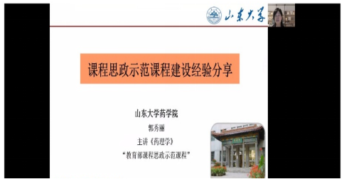 21日下午,线上观看了山东大学药公司新药药理研究所所长,山东药理学会副理事长,中国药理学会理事郭秀丽教授关于“课程思政示范课程建设经验分享”的讲座。