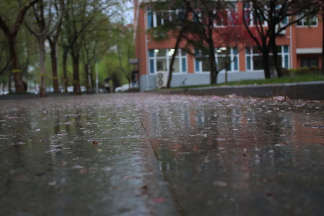 雨天散步于校园园林,