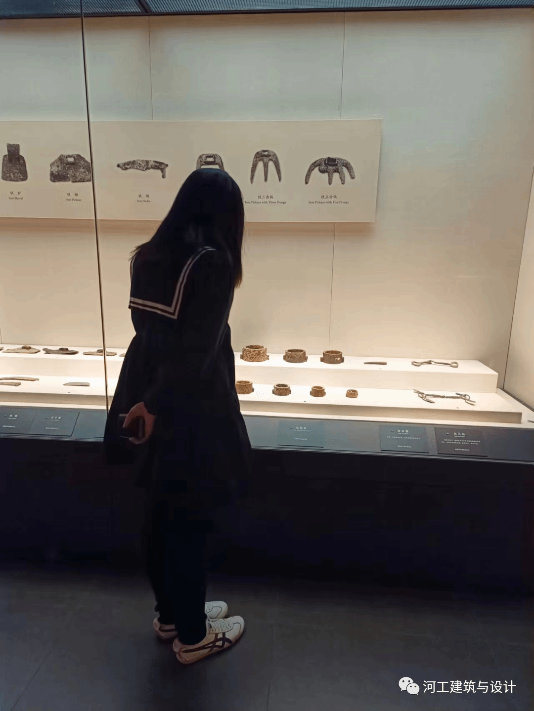 然后,同学们去看了最感兴趣的历史展览,即慷慨悲歌系列-燕国赵国,战国雄风-古中山国,大汉绝唱-满城汉墓四个展览。前三个展览主要围绕在战国时期,3个国家的古国风貌,地理位置,相互蚕食的战争和侵略,以及由游牧生活进入农耕社会所带来的的文化转变。而满城汉墓的展览则转向西汉时期,中山靖王刘胜及其妻子窦绾的古墓。复杂铺陈的墓室构造,为光守候的长信宫女,红线勾连的金缕玉衣,凤鸟长龙的门环铺首……穿过熙熙攘攘的人群,站在不同的玻璃展柜前,同学们仿佛听到了时代的呼唤。
