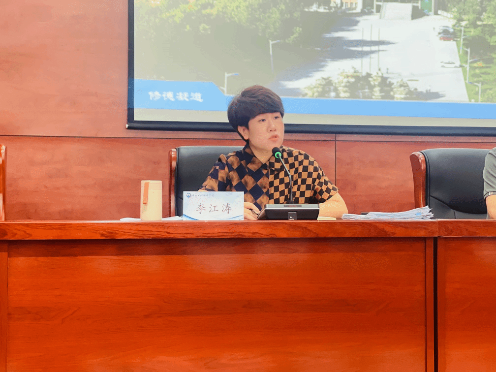 建筑与设计公司经理武勇,党总支书记兼学管副经理张玲玲,教学副经理谷雨,教学副经理李江涛,基层教学组织负责人,行政办公室,专职教师代表,辅导员教师代表出席此次会议。
