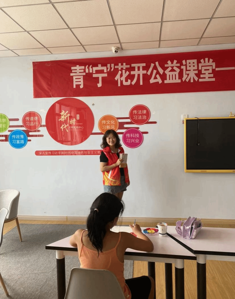 各司其职,各位志愿者在相应社区和申请地点开展积极的志愿服务。徐颖同学本次的志愿地区是人才家园小区的幼儿园托管班。将与每位孩子密切接触,辅导孩子的功课,与孩子积极互动,守护他们最纯真的笑容。