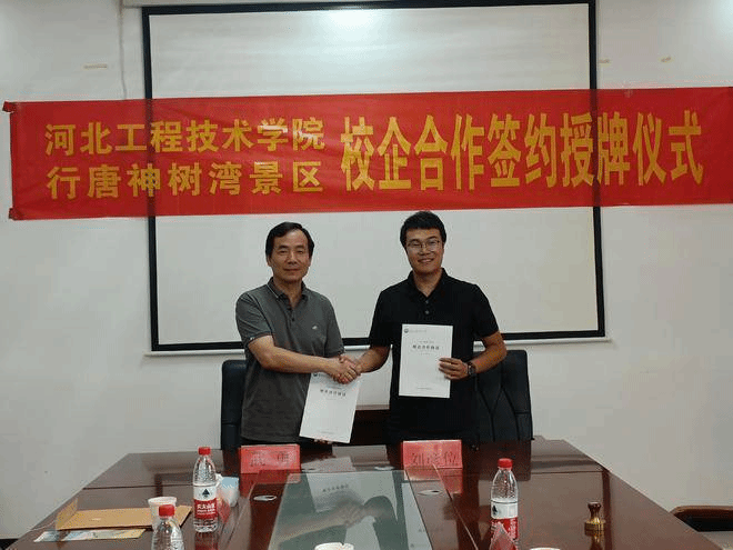 经理武勇与刘彦位董事长签订校企合作协议随后,bg大游校企合作与社会服务部部长王俊昆向景区颁授《校外实习实训基地》牌匾。在大家的见证下,校企双方领导为《神树湾美术写生基地》和《神树湾老员工实践基地》揭牌。