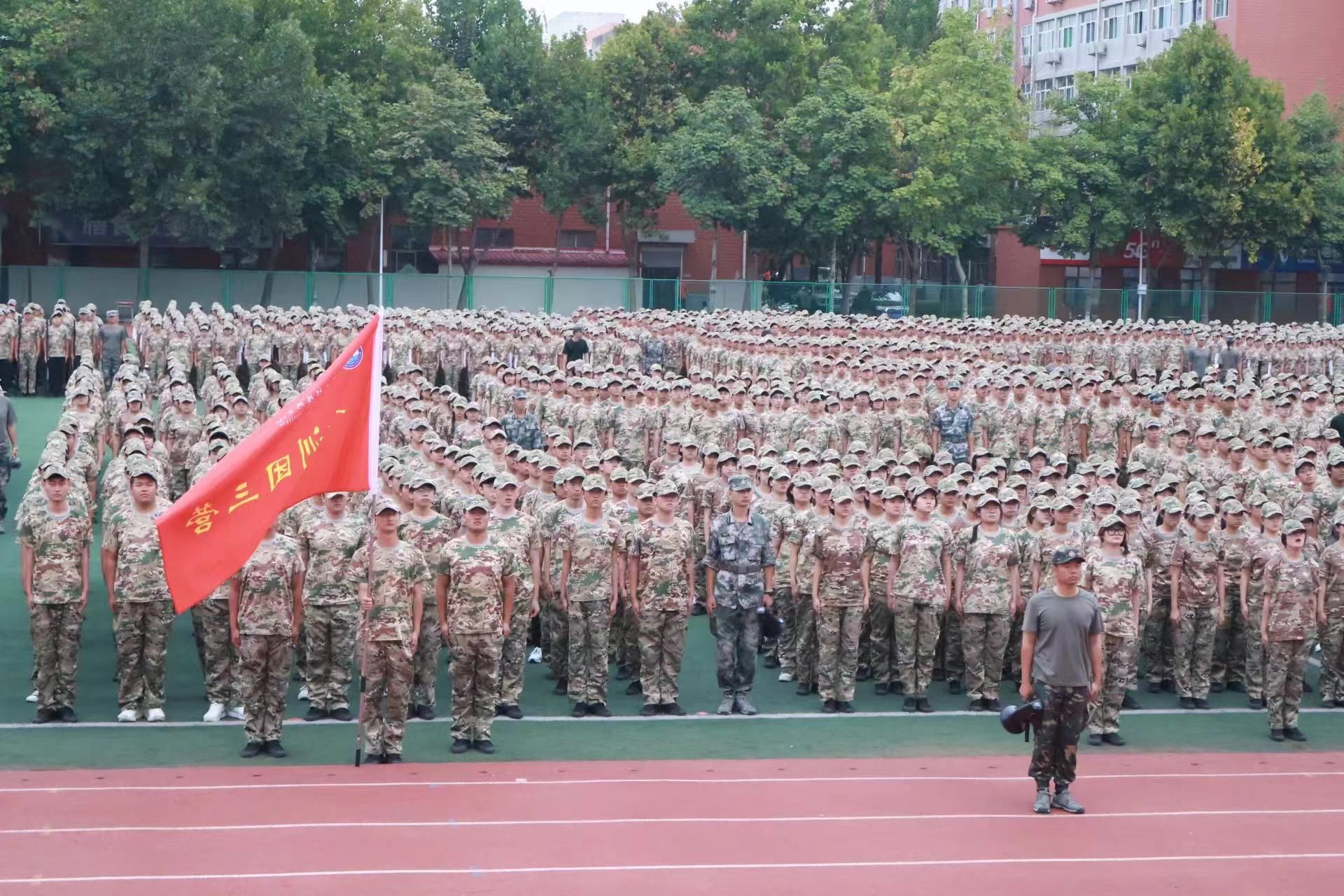 立正、稍息,敬礼,礼毕。哨声响彻层云,学子立定于绿茵场。动作由细碎零散到整齐划一,声音由绵绵无力到直冲云霄。纵使骄阳似火,汗湿衣裳,河工学子也从未言后退,只因我们是汹涌的的后浪,是试翼的鹰隼。