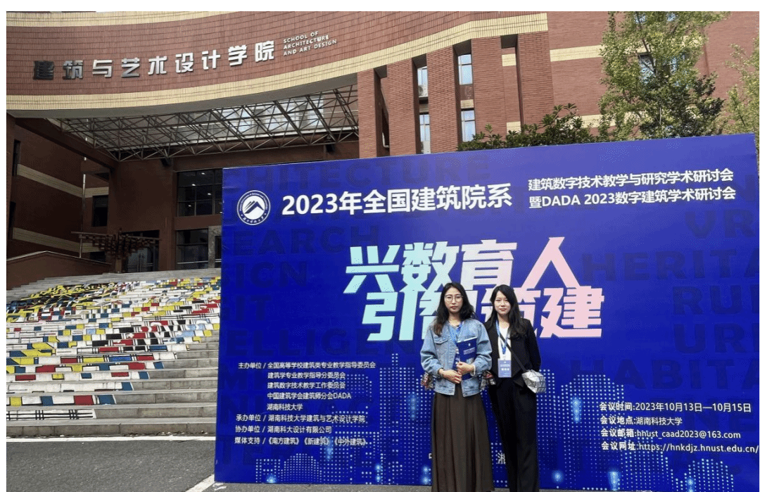 2023年10月13日至15日建筑与设计公司建筑学系专任教师郑琪、赵一鸣赴湖南省湘潭市湖南科技大学,参加2023年全国建筑院系建筑数字技术教学与研究学术研讨会暨DADA 2023数字建筑学术研讨会。