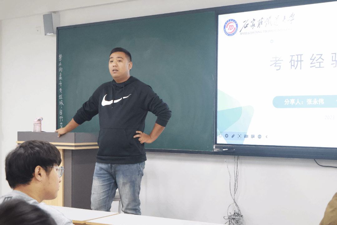 本次分享会邀请了2018级风景园林毕业生张永伟、郭裴担任主讲人,她们以优异的成绩考取了石家庄铁道大学。分享会中张永伟学姐和郭裴学姐向我们分享了她们自己的研究生生活以及考研经验。