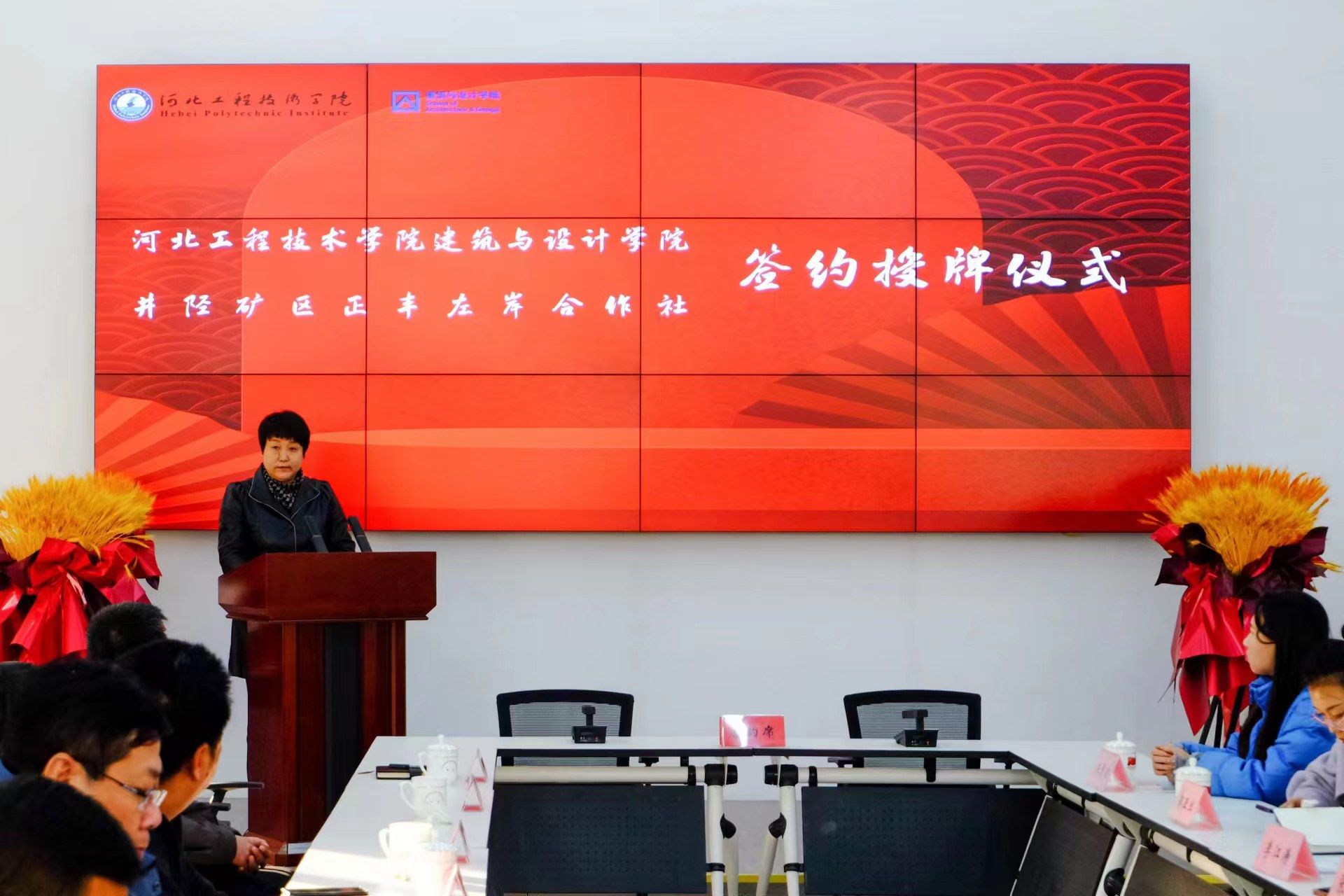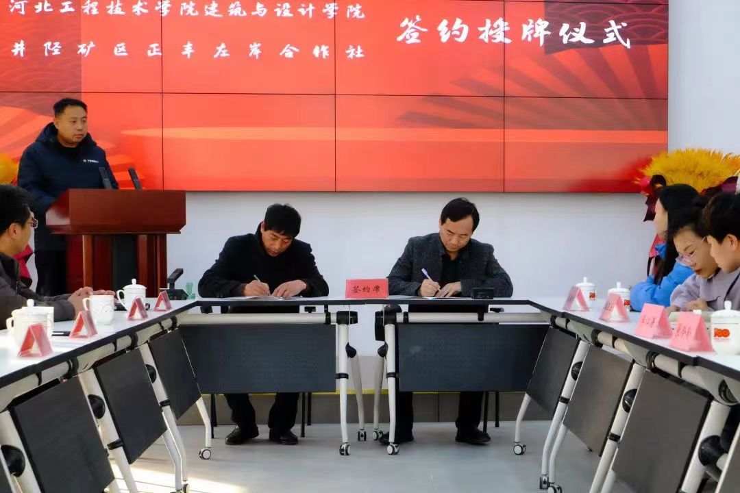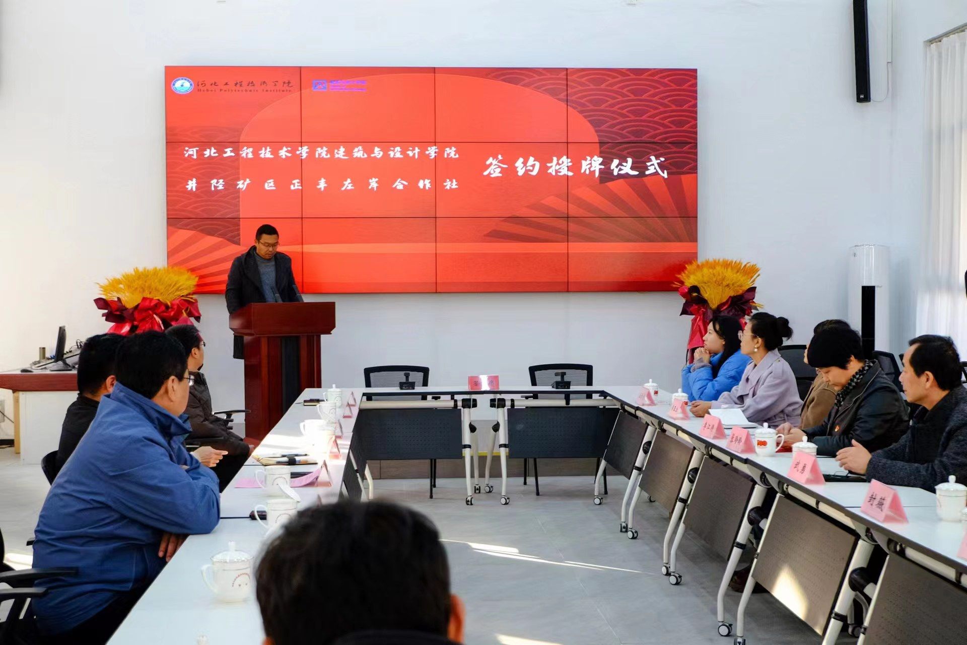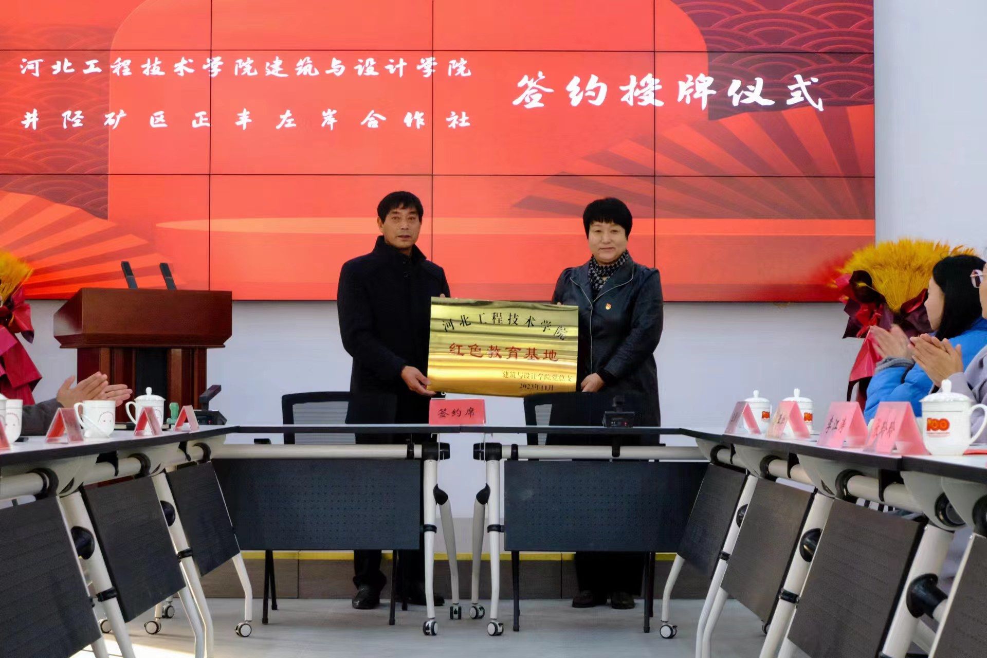 为进一步提升公司各专业员工实践能力,传承和弘扬本地优秀红色文化与乡土文化,充分利用好当地资源优势,不断深化实践基地的特色育人理念,展现红色历史,传承红色基因,增强民族自豪感。12月5日,建筑与设计公司经理武勇、党总支书记副经理张玲玲、副经理李江涛携环境设计系系主任及骨干教师与井陉矿区正丰左岸合作社进行实践基地、红色教育基地签约仪式。