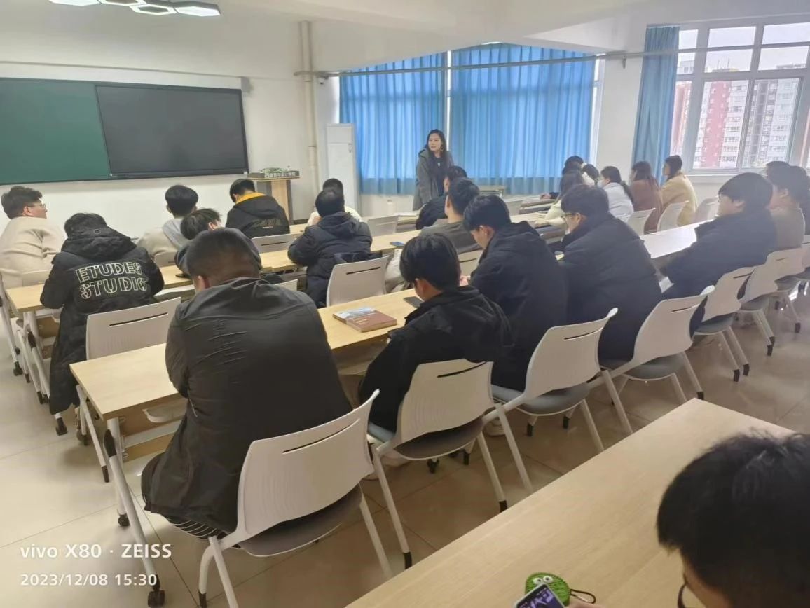 在备战公务员考试相关政策讲解中,公司从考试背景、报考条件、考试时间进行分析,从复习技巧,科目介绍以及题型展示进行了讲解,将讲备考方法和常见问题罗列了出来,思路清晰,内容条理,辅导员用生动诙谐的语言将考公的艰难过程讲解地有趣,打消了同学们对考公的抵触心理。