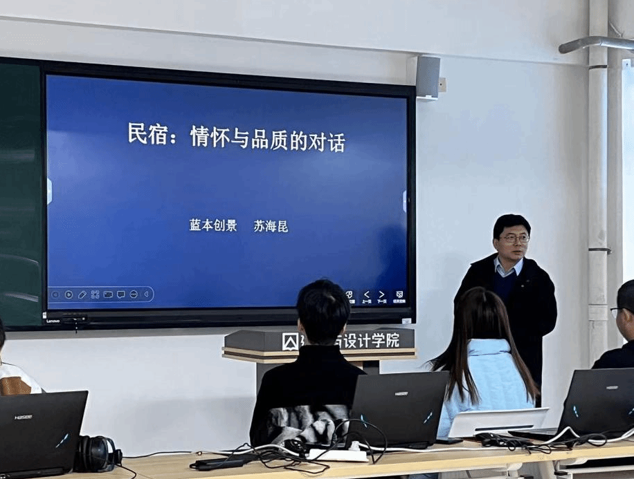为了落实公司有关毕业设计管理规定和部署,进一步加强本科生毕业设计指导工作,提高毕业设计的质量和学术规范性,提高员工参与社会一线实践的能力和创新能力,2023年12月18日下午,建筑与设计公司艺术设计学系,邀请河北蓝本建筑工程有限公司负责人苏海昆,对毕业设计项目为井陉县吴家窑乡滴水岸村民宿空间设计的师生进行专项讲座研讨,讲座主题为情怀与品质的对话—民宿空间设计。