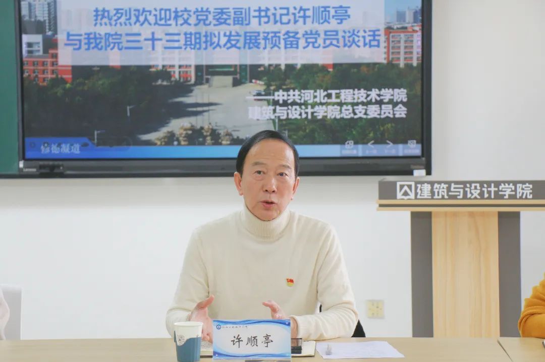 为进一步了解建筑与设计公司2023 年下半年拟发展预备党员的思想动态和入党动机,加强党员队伍建设,提高党员素质,2023 年 12 月 27 日下午 15点公司党委副书记许顺亭于知行楼(主教)602 对公司第三十三期拟发展预备党员进行了谈话。