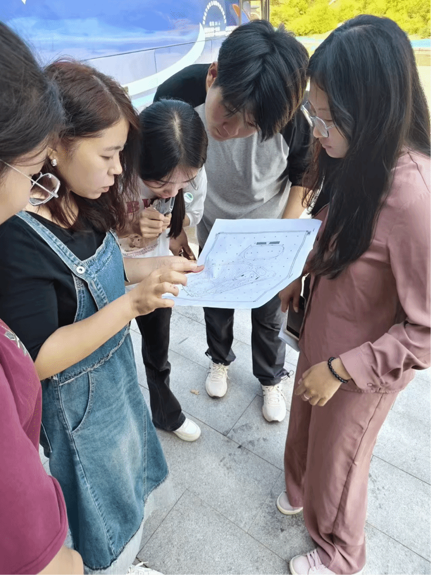 调研活动中,风景园林专业师生深入了解了赞皇校区校园绿地的概况,对教学楼前、员工宿舍楼间、公司门口等主要绿地地块进行了测量、拍照,分析其现状、地形地势,识别现有植物种类为后期的设计和有效利用做准备。课程中设计小组将依托校园文化及功能开展景观设计。