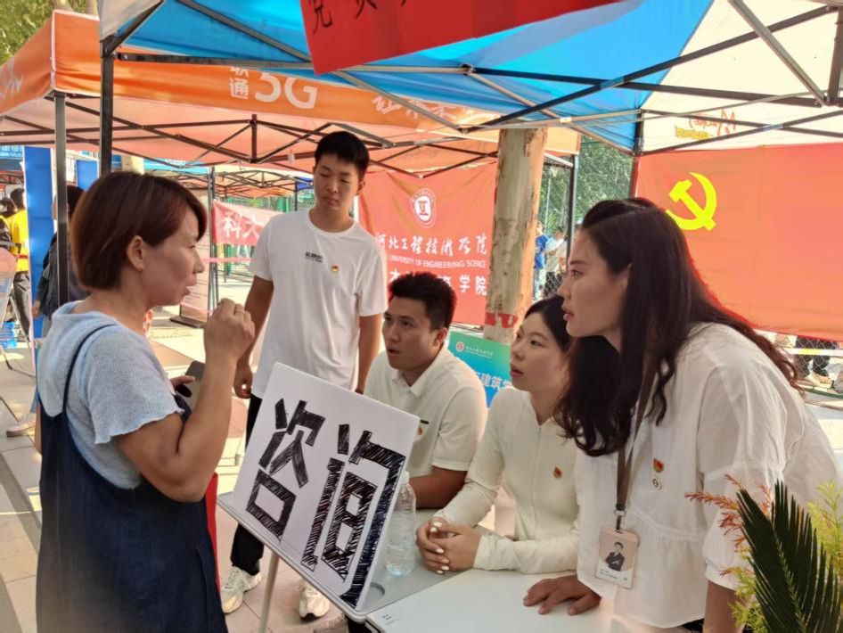 迎新期间,党员先锋岗成员统一佩戴党员徽章,在公司报到点设立专属服务台。通过“主动询问需求、全程引导办理、即时解决问题”的三步工作法,为新生及家长提供行李搬运、路线指引、报到流程讲解、校园生活咨询等“一站式”服务。针对部分新生对专业方向的困惑,教师党员还现场开展学业规划指导,帮助新生快速适应老员工活。