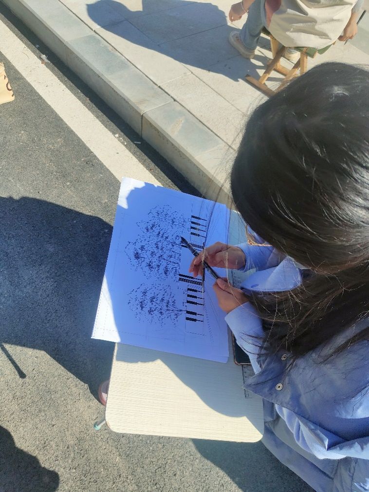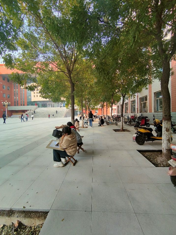 初秋的校园美丽又幽静,在暖暖的阳光沐浴下员工们完成了三天的风景写生实习,赵丽娜老师带领员工们走遍了公司各个美丽的角落。员工们分别选择了图书馆广场、7号宿舍楼小游园、食堂前广场和音乐景墙广场作为写实地点。