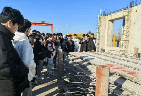 此外,认识实习还安排了实际工程项目现场参观学习。同学们前往正定县塔元庄公司项目,现场技术总工梁总详细介绍了该项目的建筑特点和施工技术。幼儿园部分采用了超低能耗的被动式建筑,实现了恒温、恒氧、恒净、恒静的舒适环境,同时展示了其独特的节能构造。而小学部分则采用了装配式建筑技术,显著节约了工期和造价。同学们通过实地参观和聆听讲解,对智能建造在实际工程中的应用有了更加直观和深入的认识。