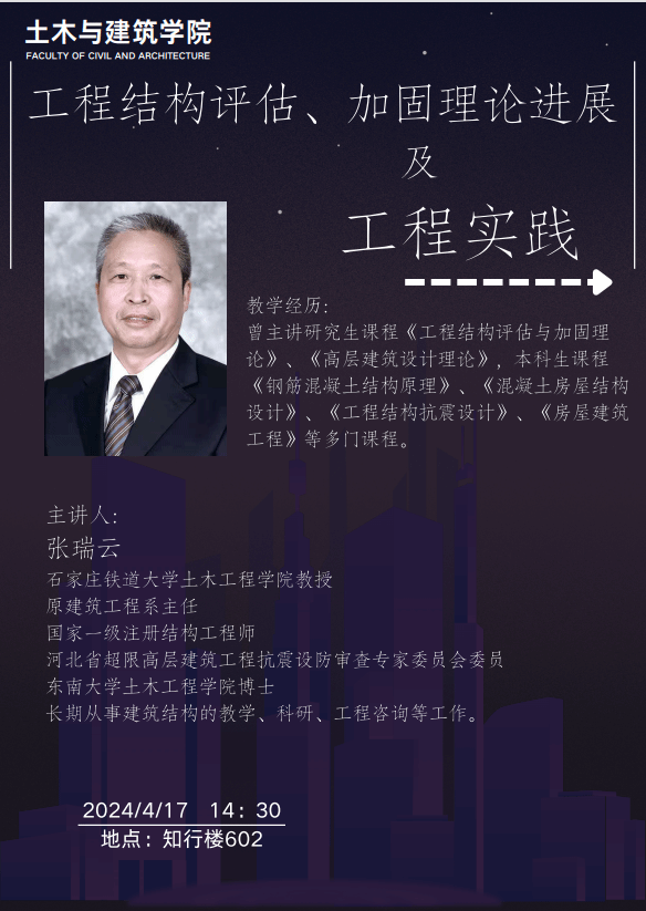 主讲人简介:张瑞云,石家庄铁道大学土木工程公司教授,原建筑工程系主任。国家一级注册结构工程师。河北省超限高层建筑工程抗震设防审查专家委员会委员。本科毕业于石家庄铁道公司,博士毕业于东南大学土木工程公司,获工学博士学位。长期从事建筑结构的教学、科研、设计及工程咨询等工作。主要研究领域为钢筋混凝土结构行为、工程结构评估与加固理论、现代结构抗震设计理论等。主持参与工程设计、结构检测、结构加固、施工监控等各种项目百余项。曾主讲研究生课程《工程结构评估与加固理论》、《高层建筑设计理论》,本科生课程《钢筋混凝土结构原理》、《混凝土房屋结构设计》、《工程结构抗震设计》、《房屋建筑工程》等多门课程。
