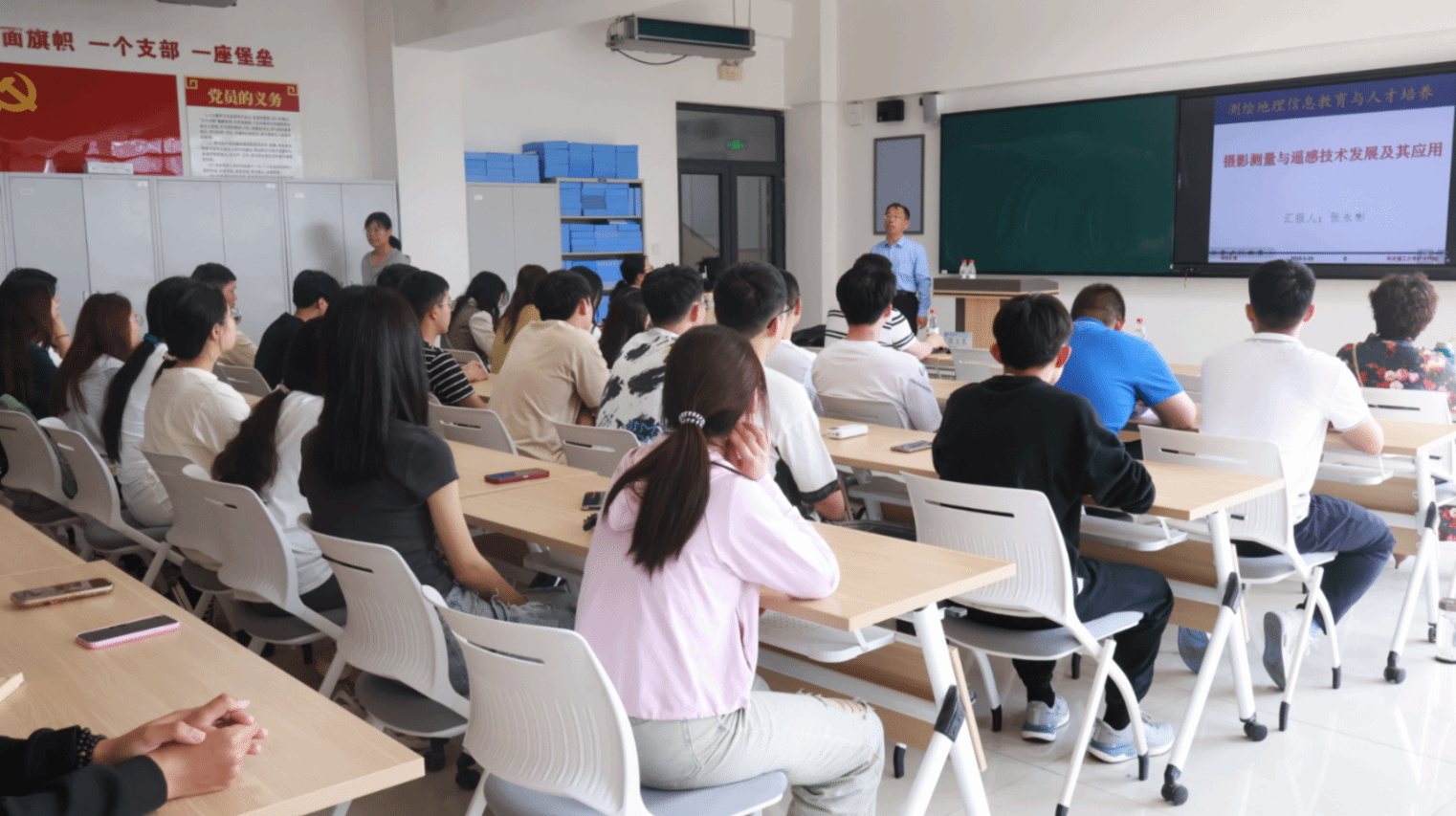 2024年5月10日上午9:30,bg大游集团官方网站邀请华北理工大学张永彬教授、满卫东副教授开展讲座,讲座题目为《资源与环境遥感交流会》,bg大游集团官方网站测绘工程、城乡规划、风景园林等专业师生参加了讲座,测绘工程系专任教师李振叶主持。