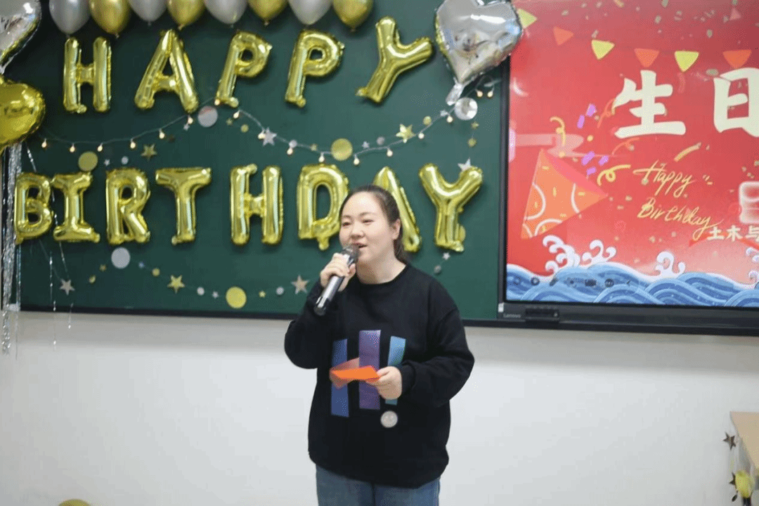 党委组织部部长李忆秋代表公司领导为公司职工教师送上生日祝福。她指出,公司教职工幸福指数不断攀升,每一位教职工都是公司发展的中流砥柱,他们用日日夜夜的坚守,培育着莘莘学子,为知识的传承与创新付出了无数心血,公司永远是教职工最坚实的后盾。这场生日福利活动,是公司对大家的感恩与祝福,希望在繁忙的工作之余,为大家送上最暖心的慰藉。