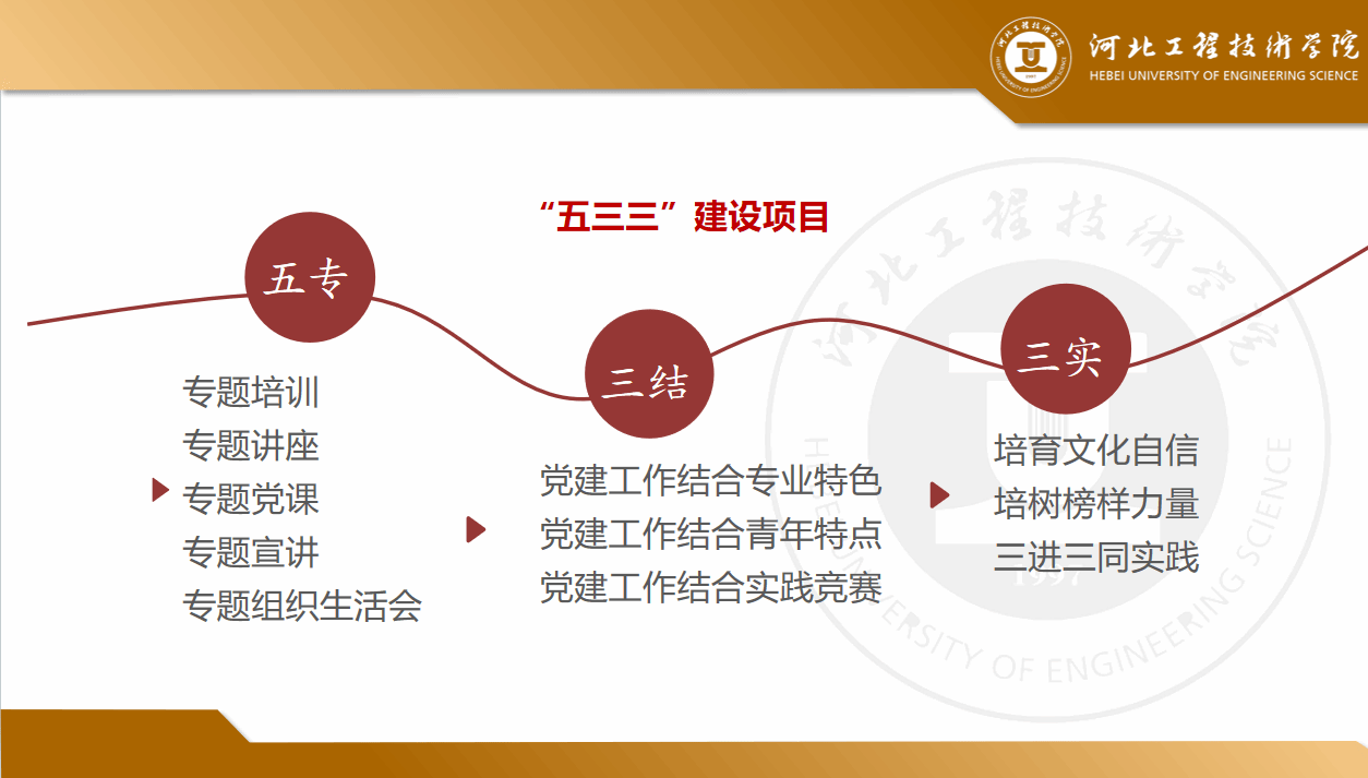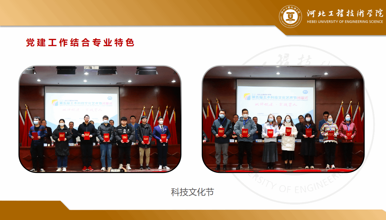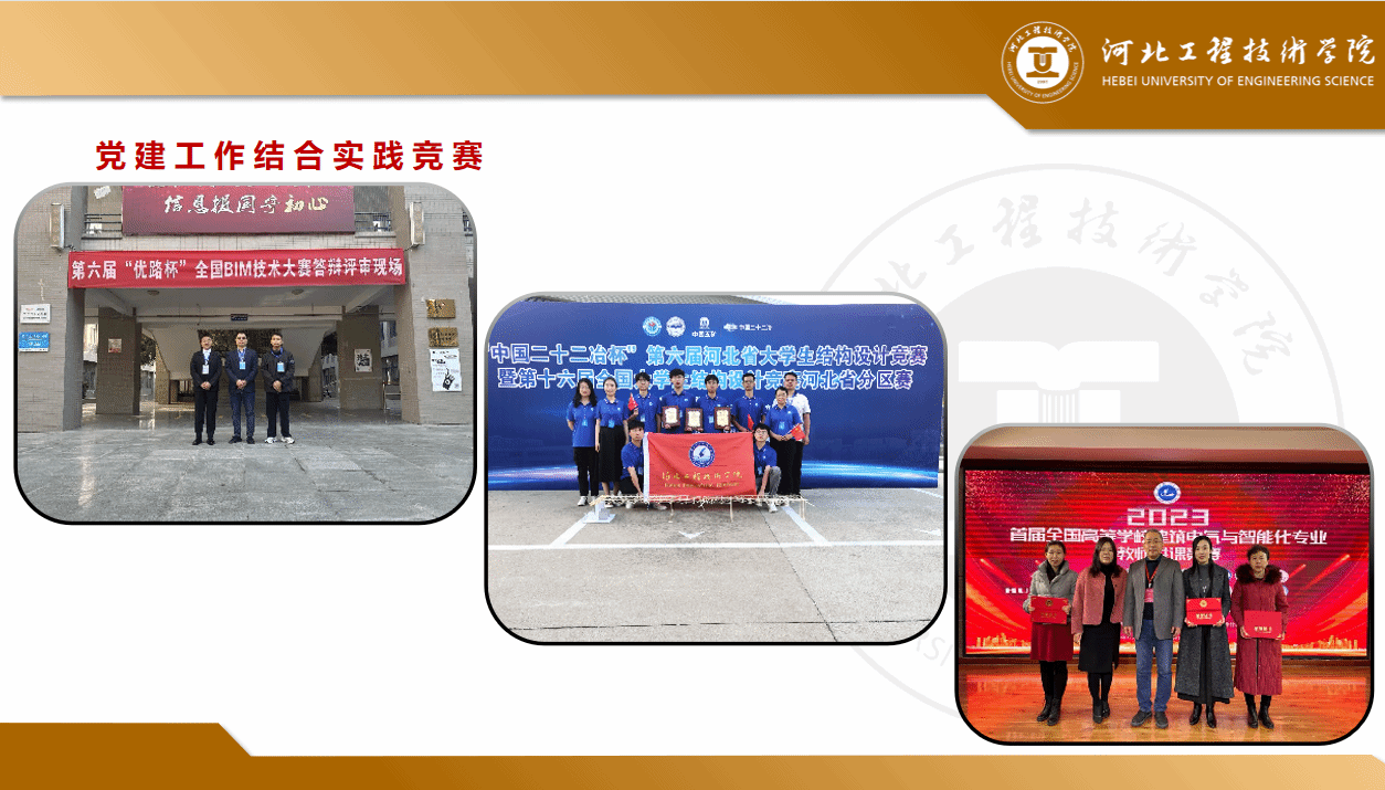 围绕中心抓党建、抓好党建促发展,践行使命,总支不断拓宽党建工作载体,逐步培育并形成“党建工作结合专业特色,党建工作结合青年特点,党建工作结合实践竞赛”工作特色,注重把党员理论政治素养提升渗透到人才培养过程中,形成全员育人、协同育人效果。