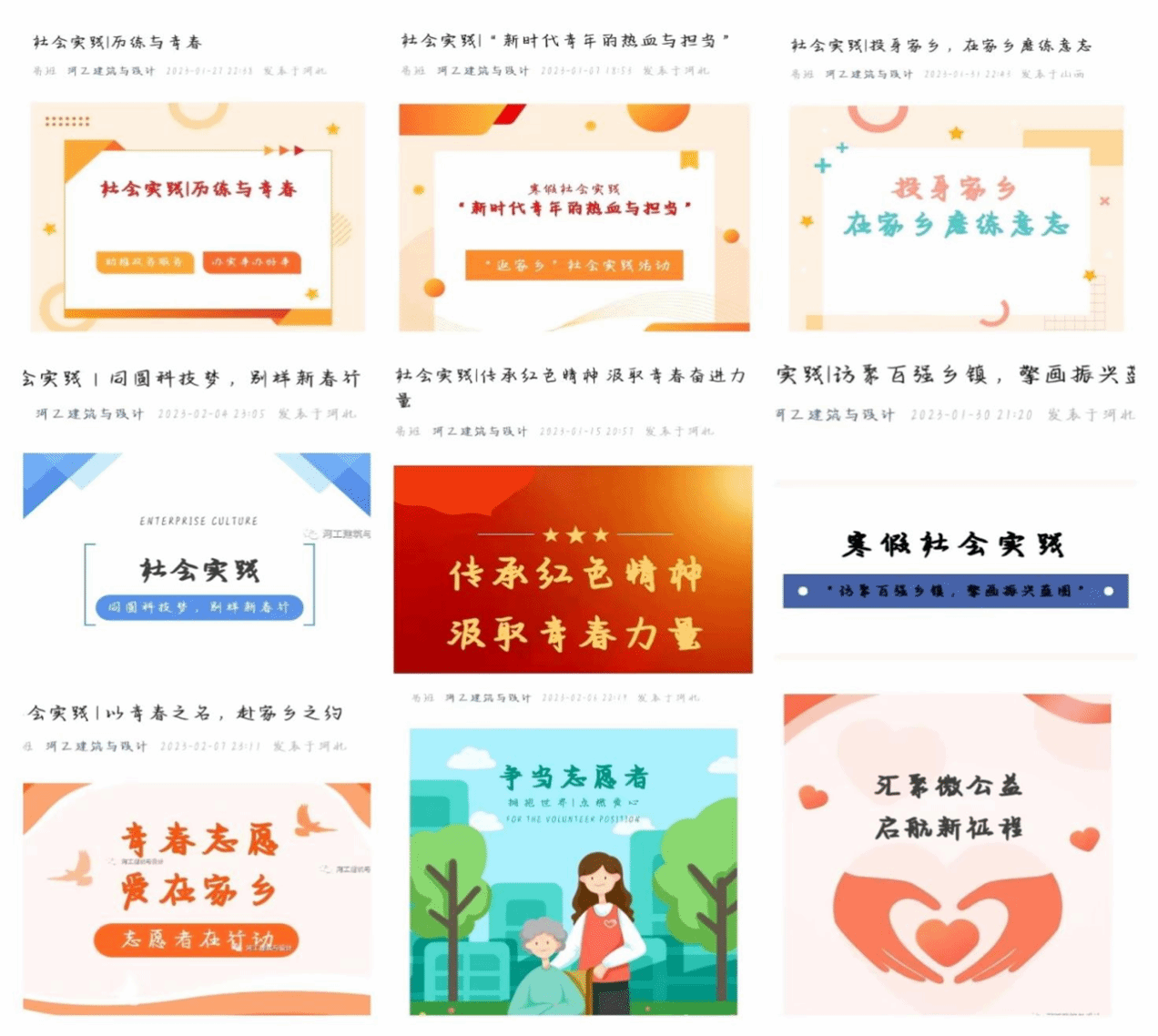 为了响应团中央关于“每名员工在校期间至少参加一次‘三下乡’或‘返家乡’社会实践”的要求,动员更多员工加入其中;为了全面领导老员工自身能力;为了增强老员工的文化素养和实践能力,积极的去参与社会实践,增强自身提升和思想觉悟;特此,建筑与设计公司社团联合会举办开展2023年寒假老员工“返家乡”社会实践活动。活动实践方式为政务实践、企业实践、公益服务、社区服务、乡村振兴、兼职锻炼、文化宣传和网络“云实践”八项。