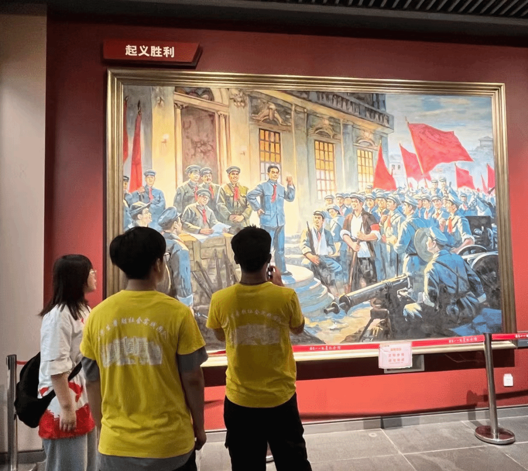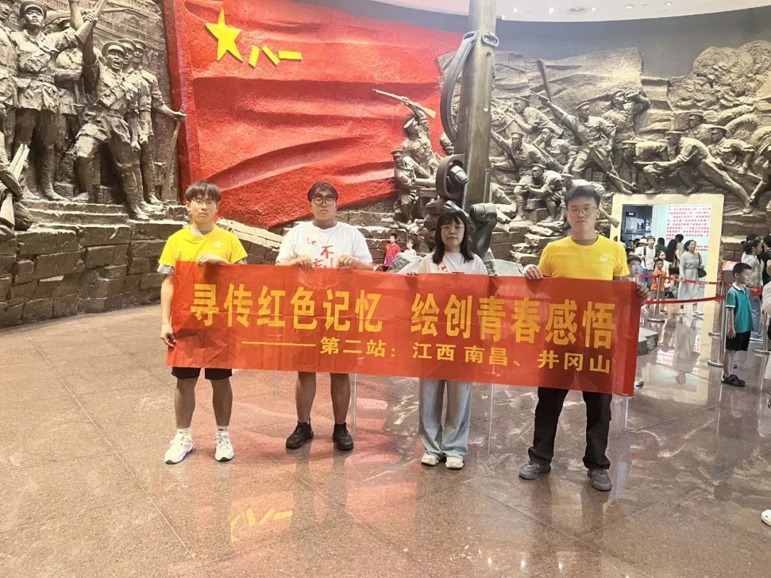 重温八一历史,赓续红色薪火。第二站走进南昌八一起义纪念馆,感受英雄的红色血脉。纪念馆蕴藏着丰富的历史文化和红色文化资源,是开展爱国主义和革命传统教育,培养社会主义核心价值观的重要资源。在这里,实践队员们瞻仰了鲜艳的八一军旗,历经硝烟炮火的枪弹武器、信函刊物、生活器具等珍贵文物,它们正安静地放在纪念馆陈列展柜里,无声诉说着峥嵘岁月里的红色故事,见证着军旗升起与人民军队的诞生和发展壮大。在参观过程中,实践队员们或凝视、或交流、或记录,被革命先烈的爱国情怀和坚定信仰所感动。实践队员李浩泽感慨道:“我很荣幸参加此次活动。来到八一起义纪念馆,仿佛自己能回到那个弥漫战火的时代,眼前浮现红军们浴血奋战,英勇杀敌的场景,耳旁响起中共打响武装反抗国民党反动派的第一枪。革命前辈们的英勇作战和革命精神,这种精神让人感受到热心沸腾和奋斗的冲动。作为一名新时代老员工,不仅仅要了解历史,更要激励自己的爱国热情和奋斗精神,更加坚定为实现中华民族伟大复兴而奋斗的信念。寻访红色记忆,赓续红色血脉,传承红色精神,向革命先烈致敬!