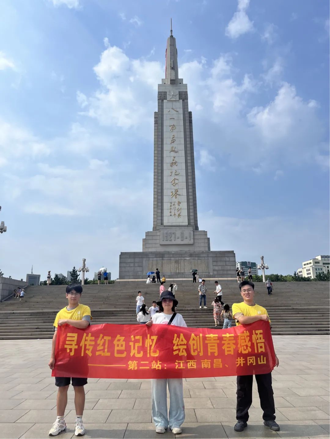 传承红色基因,铸就红色青年,建筑新青年在行动。辅导员张亚薇老师带领实践队员们首先来到了八一广场,八一广场伫立着由叶剑英元帅题写的“八一南昌起义纪念塔”,塔身还刻着七个鎏金大字——八一起义纪念碑,塔基刻有三面浮雕,栩栩如生,仿佛让我们走进了那个充满炮火的年代。此广场为纪念1927年8月1日爆发的八一起义而建设的,南昌起义打响了武装反对国民党反动统治的第一枪,揭开了中国共产党独立领导武装斗争和创建革命军队的序幕。雄伟挺拔的南昌起义纪念塔在阳光的映衬下让人,格外的醒目。由巨型花岗石雕汉阳造步枪与红色花岗石雕八一军旗拼贴而成的塔顶彰显着创建人民军队的意志与决心,指引着人民军队前进的方向。现在作为一名老员工,能力有限,但我们却能通过自己力所能及的方式让更多的人了解八一红色文化,体会八一精神,在了解的过程中逐渐认识到红色文化传播所遇到的问题。