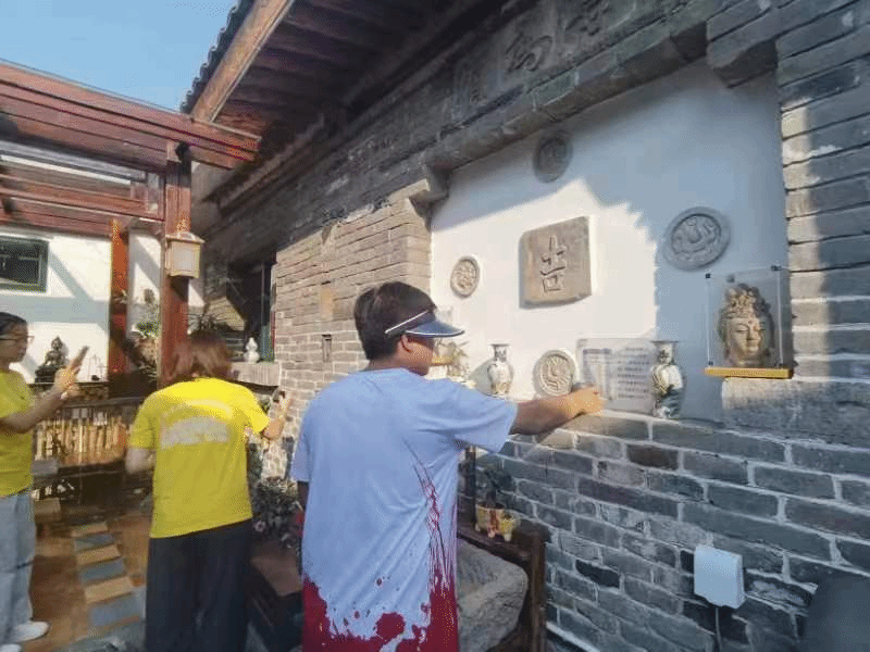 实践活动期间,许泽楠老师还带领小分队到山海关丁武寨村拜访了砖刻画非遗传承人程志利老师,从传承人的视角对山海关砖刻画的历史起源、文化内涵及其发展现状进行了解和学习。