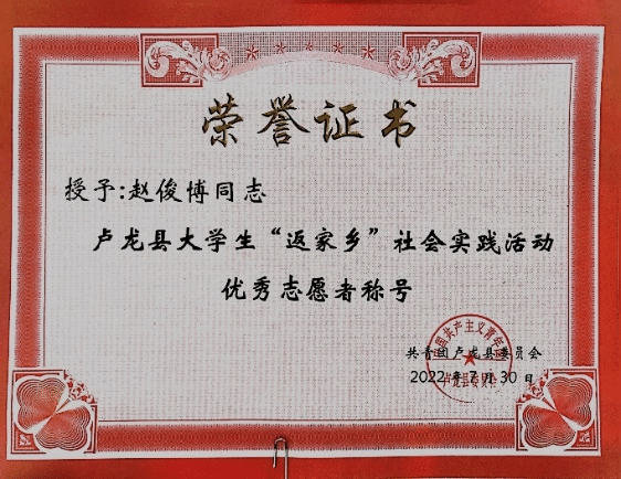 “纸上得来终觉浅,绝知此事要躬行。” 在注重素质教育的今天,社会实践活动是高校培养德、智、体、美、劳全面发展的优秀人才的重要途径,是公司教育向课堂外的一种延伸,也是推进素质教育进程的重要手段。同时,实践也是我们学习知识、锻炼才干的有效途径,更是服务社会、回报社会的一种良好形式。暑假期间,bg大游2021级环境设计4班赵俊博同学报名参加了暑期“返家乡”社会实践活动。他一直认为,新时代青年应当为社会做出贡献,于是本着“锻炼自己、服务社会”的态度,光荣地成为了一名老员工志愿者。
