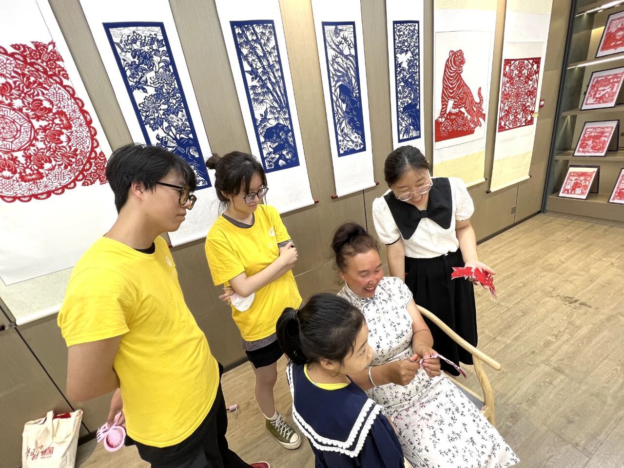 在吕梁的最后一程我们有幸联系到兴县剪纸非遗传承人李去平老师,并受邀去到她的工作室参观学习;李老师9岁开始跟奶奶学习剪纸,13岁开始创作,目前在兴县五所公司任剪纸老师,参加省级国家级剪纸比赛多次获奖,中国剪纸委员会委员,去工作室的路上,她热情的为我们介绍兴县的红色历史,还讲述了她与剪纸的不解之缘;打开剪纸基地的竹帘,实践队员无一不被眼前的场景震撼,很难想象这一幅幅精美的剪纸作品是出自这样一位年过六旬的老人手中,随后李老师逐一为我们介绍她的作品,说话间还为我们每位实践队员剪了一张小礼物,从言语和动作中我深刻的感受到李去平老师对剪纸艺术的热爱和想把非遗技术传承下去的决心,她动情对实践队员说到:现在社会好了,你们青年人一定要多学一点本领,要把老一辈人的“财富”学进手里。