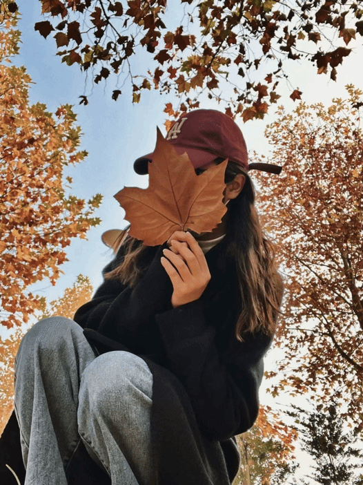 逐渐变黄、掉落、干枯的叶子诠释着厚重与温暖,亦有一份喧闹过后归于平静的安详。叶落,归于根、落于土的死亡不是终点,而是生命的另一种延伸。本次“秋日The First Sight·万象新生”主题活动要求同学们和秋日落叶合影,为未来留下美好与感动。层林尽染,落日余晖霜染红枫。晚来秋浓吹着秋风, 赏着秋景,所有的美好都将不期而至正值好景 正值青春让我们按下定格享受一刻这专属于秋日的浪漫。