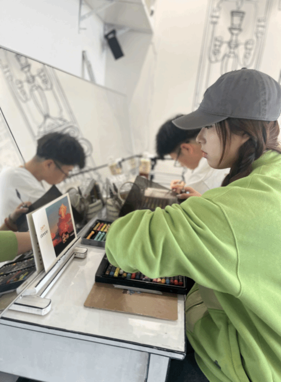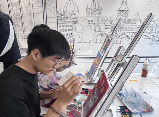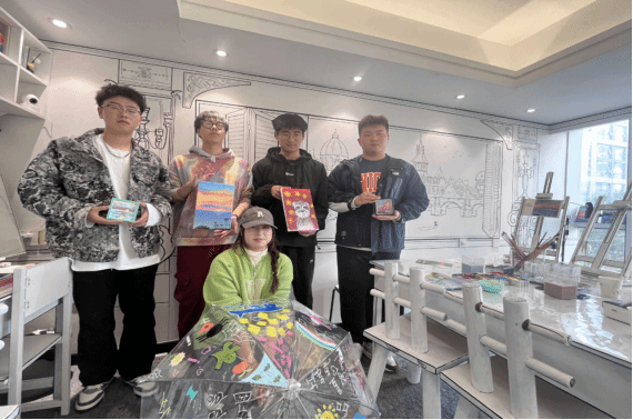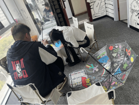 接着大家坐在一起,拿着笔,画出自己心中的美。在纸上或在伞上画出在自己喜欢的图案,将想象幻化在笔端。他们用线条勾勒出形状,用色彩填充空白,用光影塑造立体感,创造出一幅幅生动、富有想象的画面。
