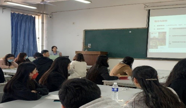 艺术设计学专业赵蕊老师展示了《中国造物文化史》中的仿生设计部分,赵老师从教材选择、员工学情、课程内容等方面做了深入剖析,最终形成七步教学法,在教学过程中注重知识点的深入挖掘以及案例的举一反三,引导员工形成良好的学习习惯。作为本次分享教师中资历最深的老师,赵老师对课堂的把控全面而从容,专业素养扎实,台风稳健,让人如沐春风。