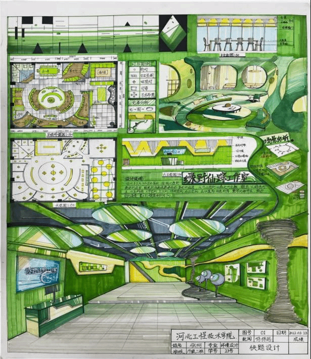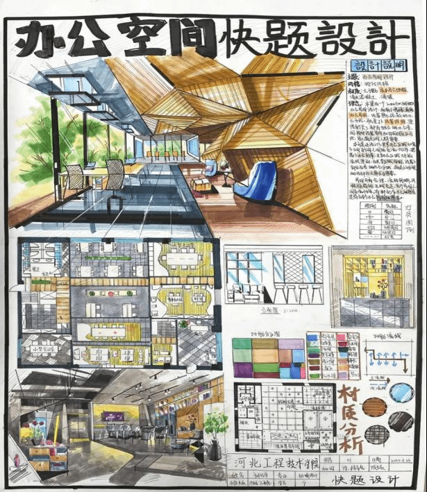 此次线上展览是环境设计专业大三员工在快题周期间的优秀作品呈现。快题设计需要打破设计常规,需要高速、优质地在较短的有限时间内提出一个可供发展的方案。这种方式强调设计者个人的设计素质与修养,设计能力与表现相辅相成,缺一不可。高年级员工具备了一定的设计能力和专业知识的积累,经过快题周5天时间集中强化训练,在设计能力和表现能力上有一个较大的飞跃。