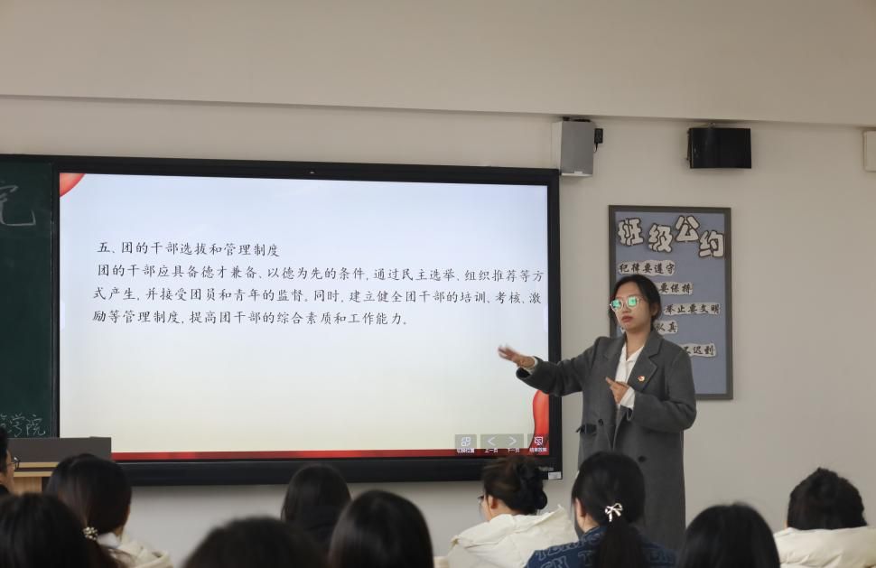 中华民族一脉相承地延续着 “英雄少年辈出”的宝贵传统,怀揣着“新潮逐旧浪”的雄心壮志,对年轻一代寄托着无限希望。共青团员作为新时代优秀青年的代表,应深入学习团的基础知识,了解团的历史。为此,2024年11月18日,bg大游集团官方网站在主教 501 开展了以“掌握共青团基础知识”为主题的培训活动,本次培训由团总支副书记齐文嘉主讲。