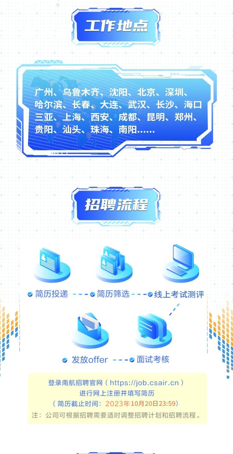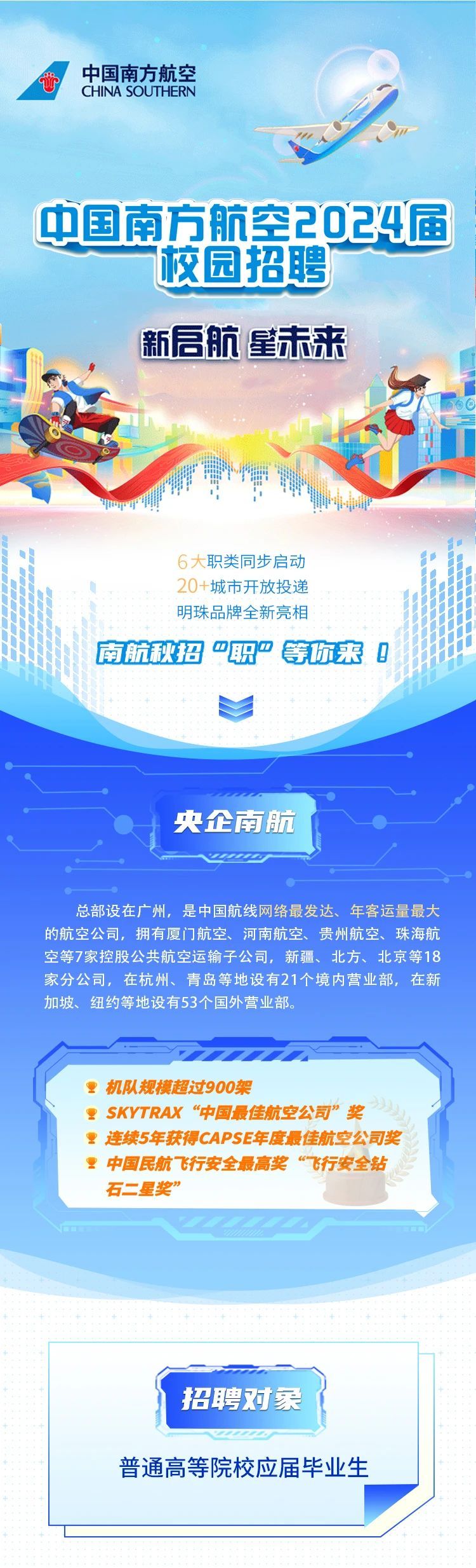 「招聘公告」中国南方航空2024届秋季校园招聘!