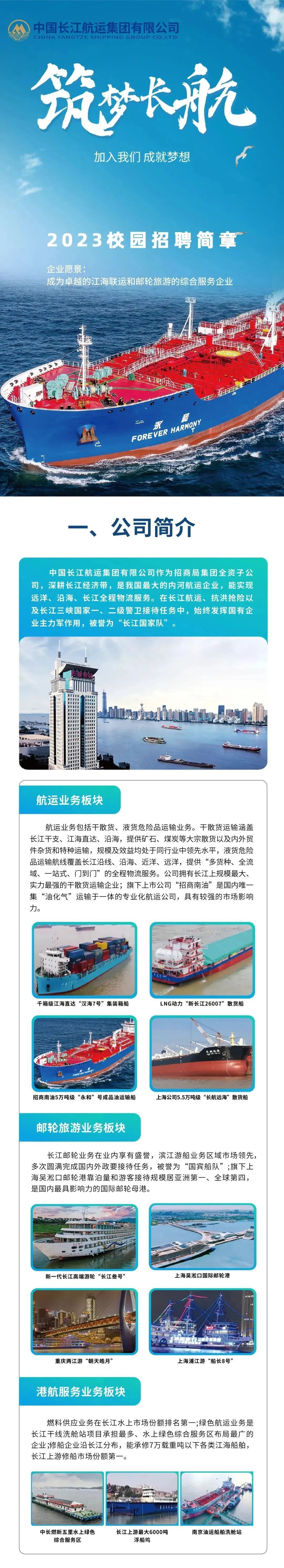 「招聘公告」中国长江航运集团2023年校园招聘!