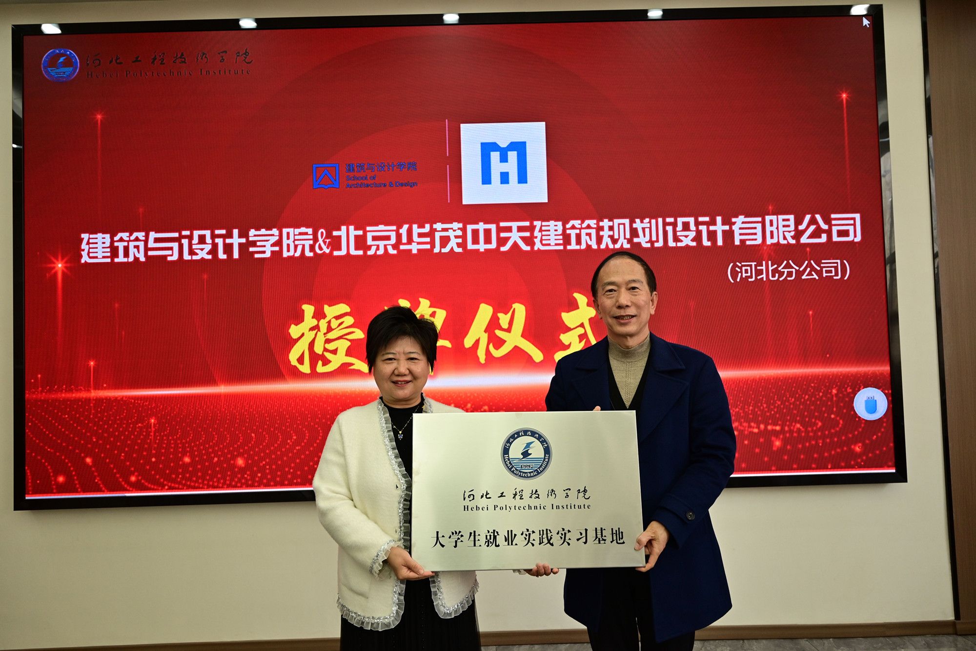 随后,校企双方签订了《校企合作协议》,并举行了就业实践实习基地的授牌仪式。
