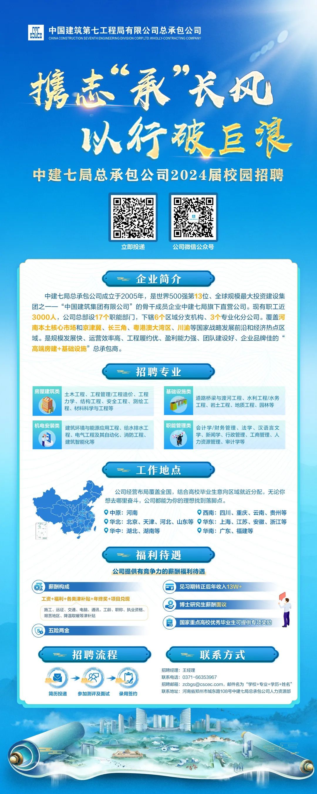 「招聘公告」中建七局总承包公司2024届校园招聘