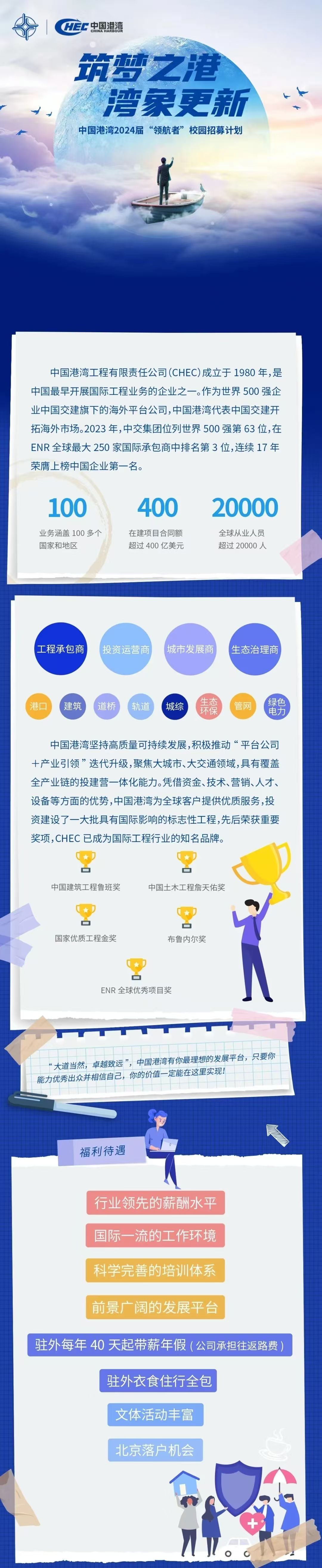 「招聘公告」中国港湾2024届“领航者”校园招募计划