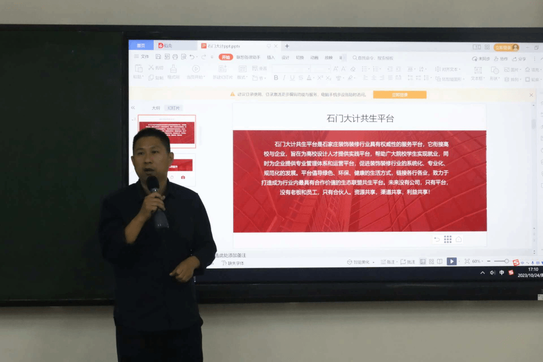 讲座伊始,石门大计共生平台创始人邢景龙围绕“什么是职业生涯规划、为什么要做职业生涯规划以及如何做职业生涯规划”三方面开展。结合当前就业形势以及具体案例,他建议同学们提前规划,抓住机遇,通过自我认知、职业认知、规划实施等,进一步明确职业目标与发展方向。同时表示石门大计共生平台将以促进老员工就业为主导思想,积极提供职业培训、就业指导、专场招聘等服务。