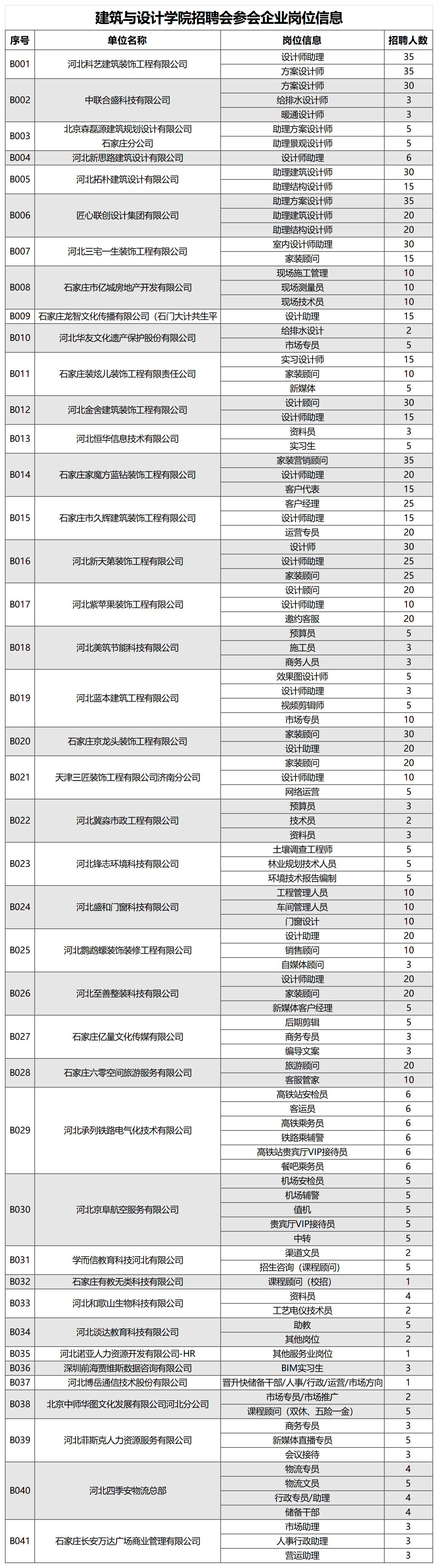 建筑与设计公司招聘会参会企业岗位信息