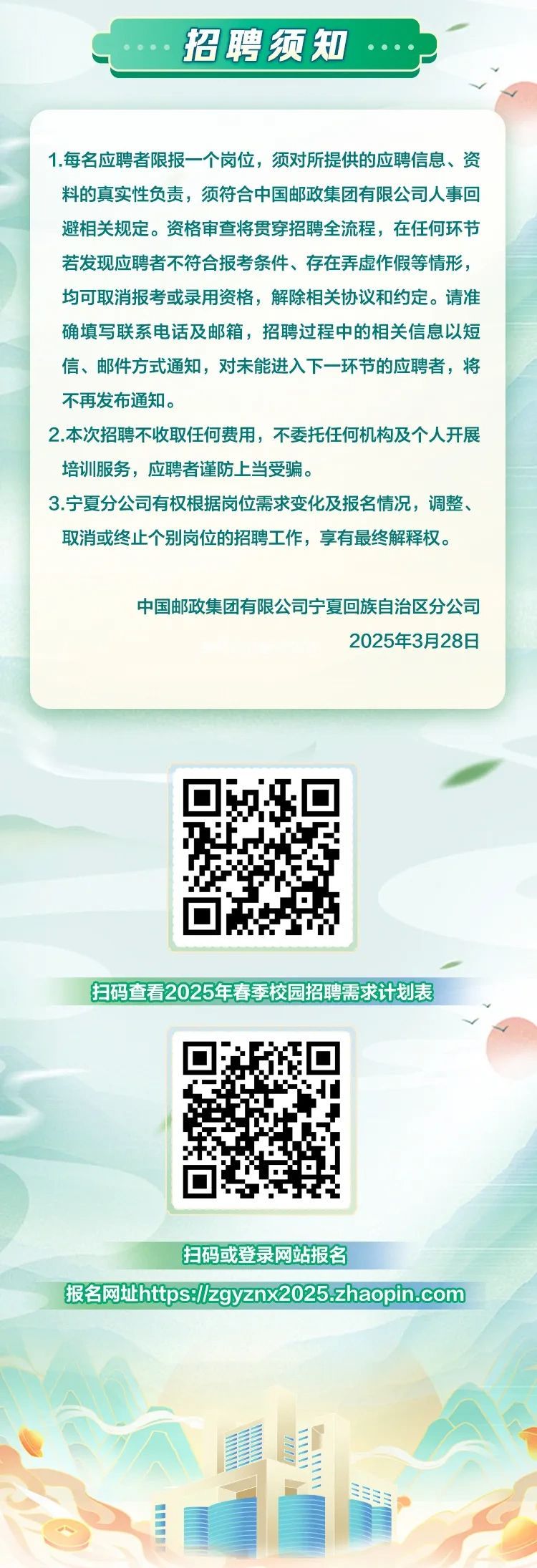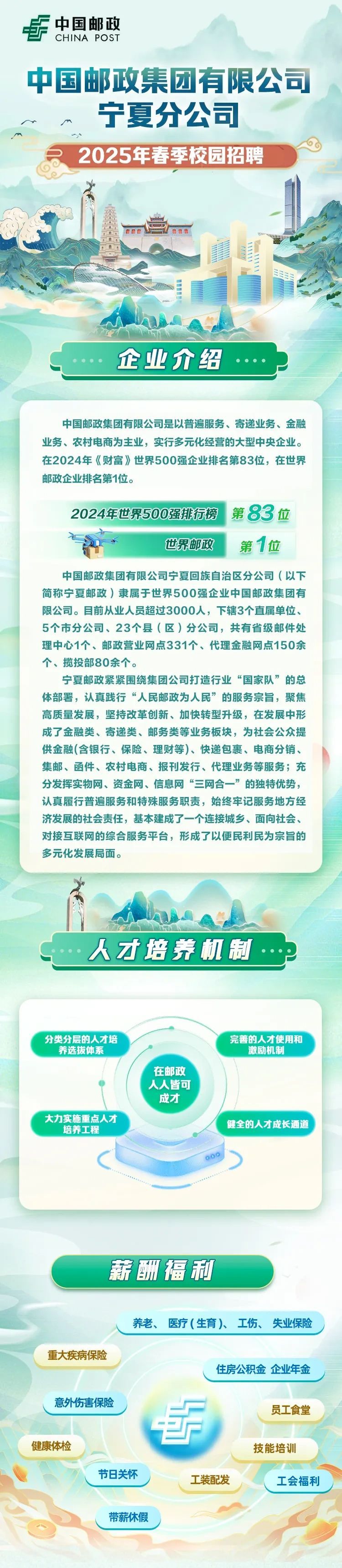 「招聘公告」中国邮政集团有限公司宁夏分公司2025年春季校园招聘