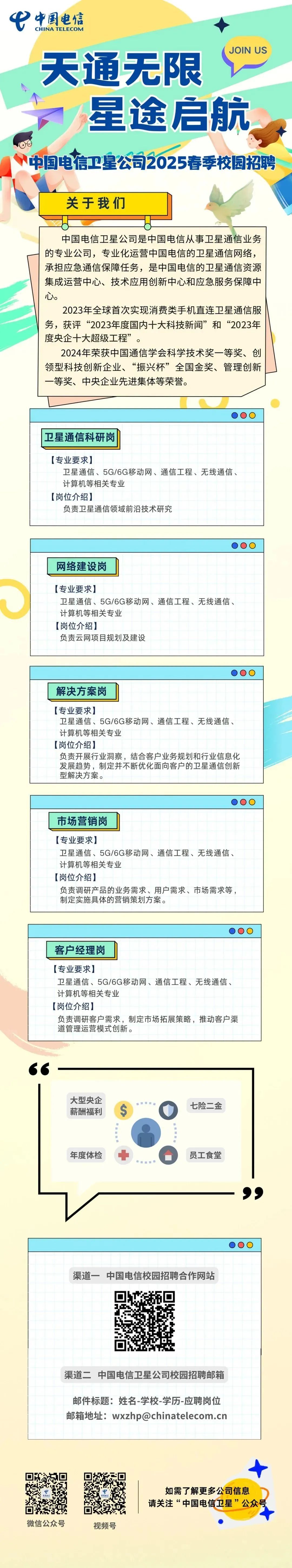 「招聘公告」中国电信卫星公司2025春季校园招聘