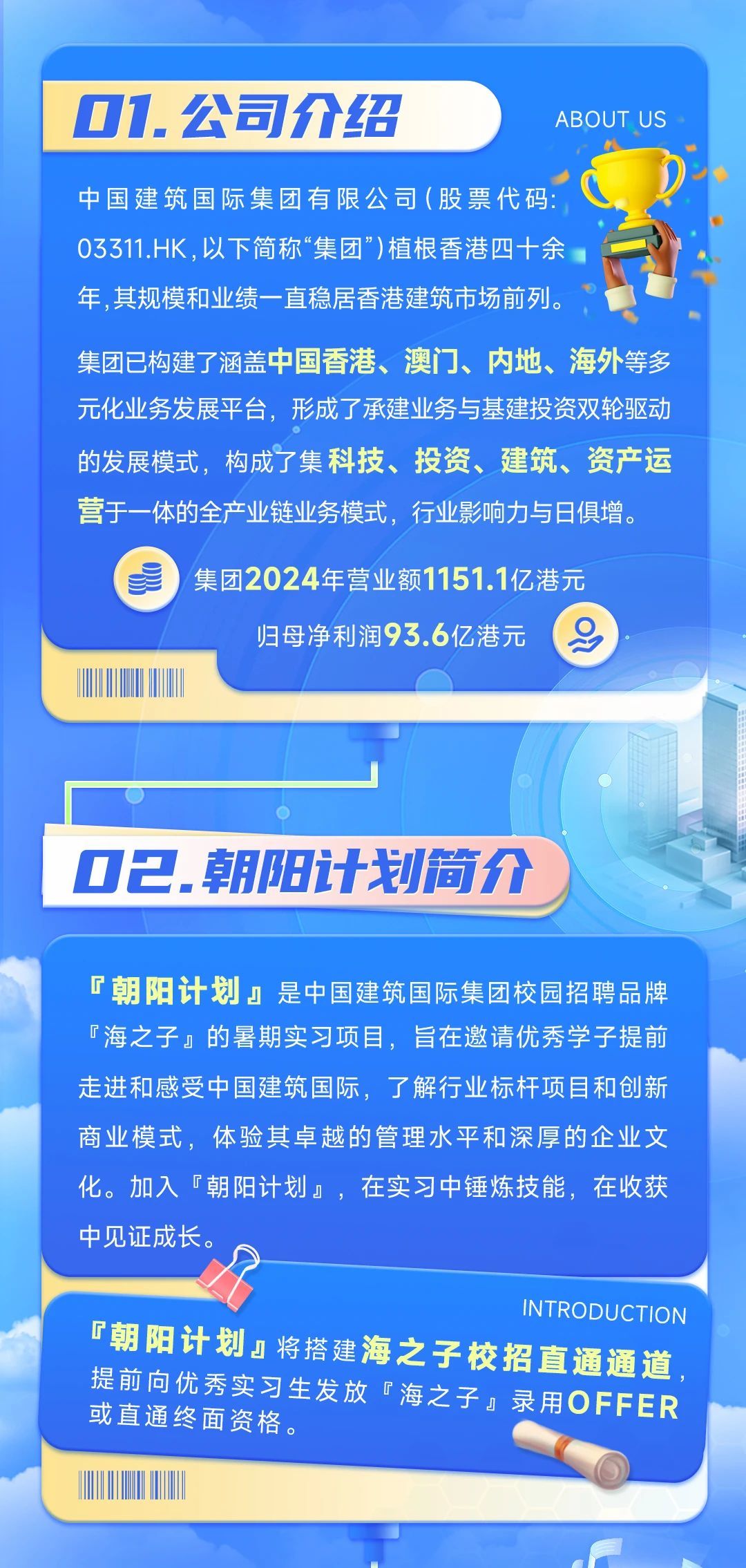 「招聘公告」中国建筑国际集团2025“朝阳计划”暑期实习生招募全面启动