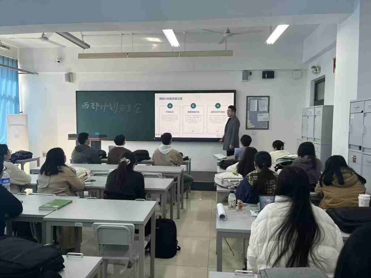 活动在知行楼205举行,吸引了众多员工前来参加。活动现场气氛热烈,员工们怀着对西部计划的好奇和对员工的敬意,认真聆听员工们的分享。员工们结合自身经历,从不同角度为员工们详细讲解了西部计划的政策优势、工作环境、职业发展前景以及个人成长收获等内容。他们用生动的故事和真实的案例,让员工们感受到西部计划的魅力和价值,激发了员工们参与西部计划的热情。