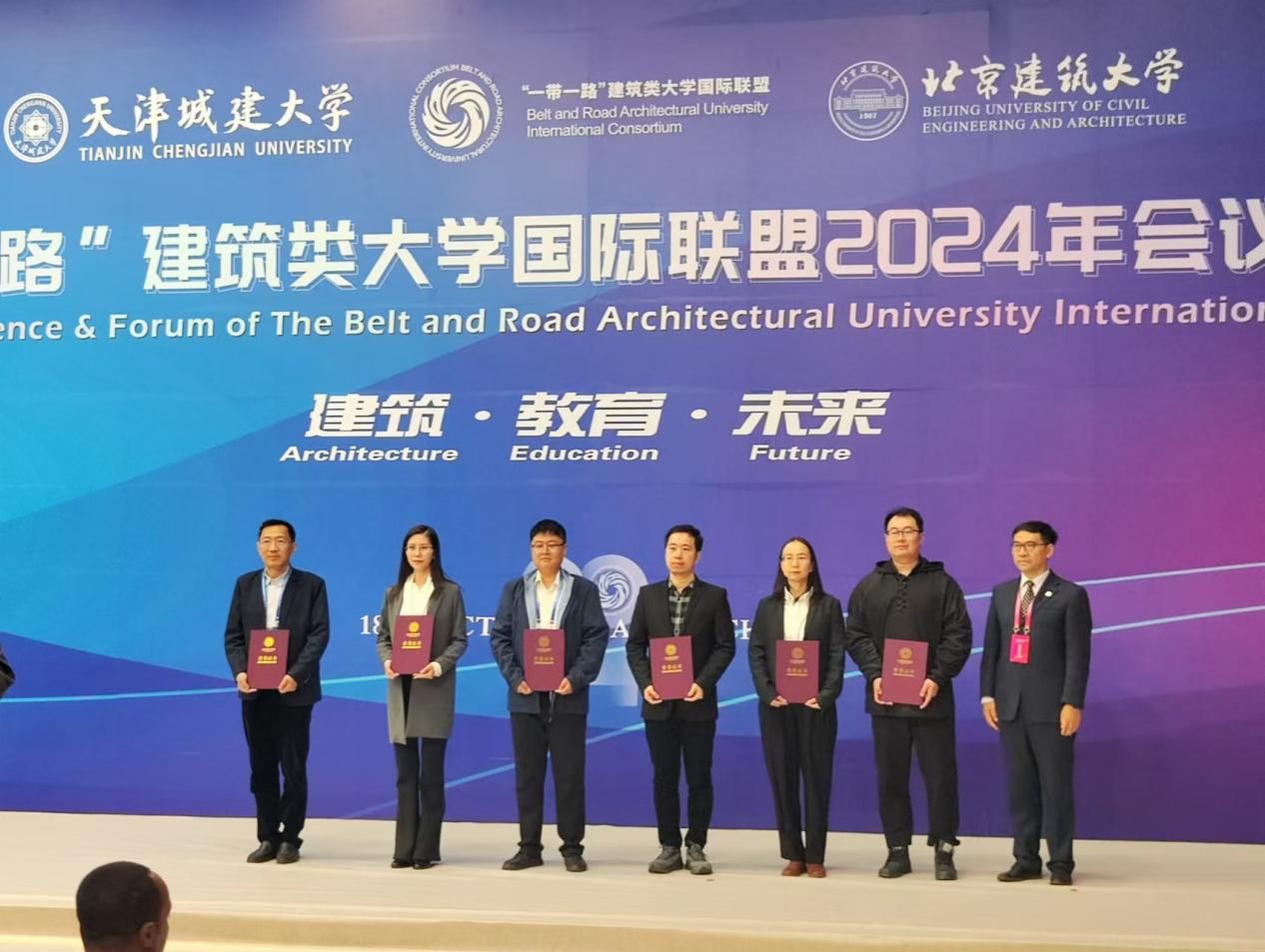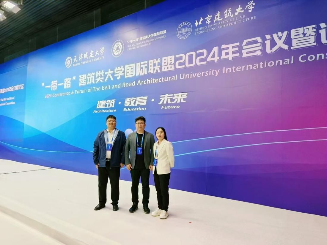 2024年10月18日-20日,“一带一路”建筑类大学国际联盟2024年会议暨论坛在天津城建大学召开。此次论坛由联盟主席单位北京建筑大学和天津城建大学联合举办,以“共‘筑’盛世之路·同绘繁华之卷”为主题。共吸引来自14国40余所高校和企业100余名联盟成员代表、专家学者和企业家代表参加,bg大游集团官方网站建筑学系系主任齐成龙、骨干教师姜北荣、王洋洋一行三人参加了会议与颁奖仪式。